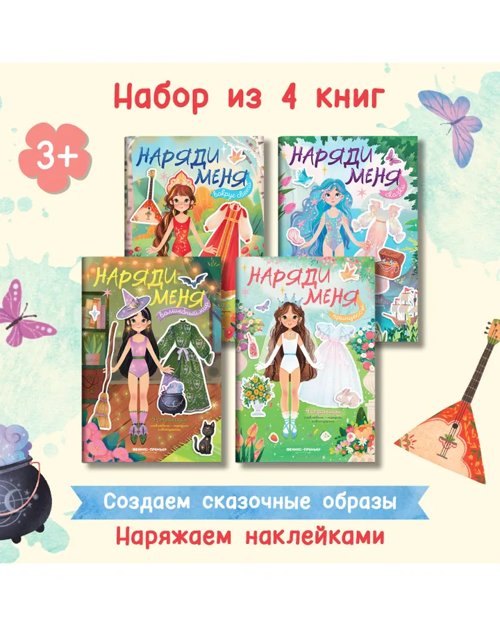 Набор из 4 книг Феникс Премьер Наряди меня наклейками : Принцессы. Сказки. Волшебный мир. Вокруг света