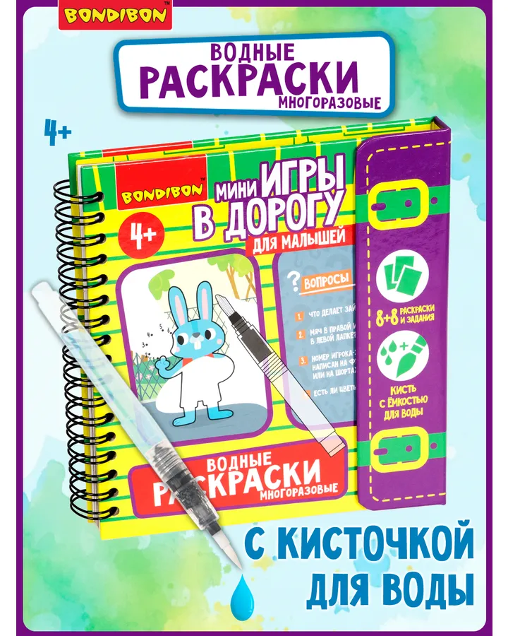 Игра в дорогу для малышей Bondibon Водные раскраски 7 многоразовые с кистью