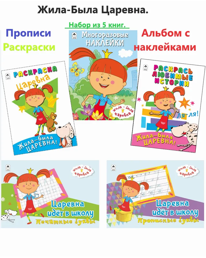 Набор Алтей Жила-Была Царевна. Набор из 5 книг. Прописи. Раскраски. Альбом с наклейками