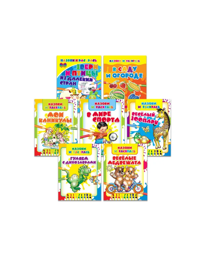 Набор раскрасок Харвест для детей Животные Назови и раскрась 7 шт