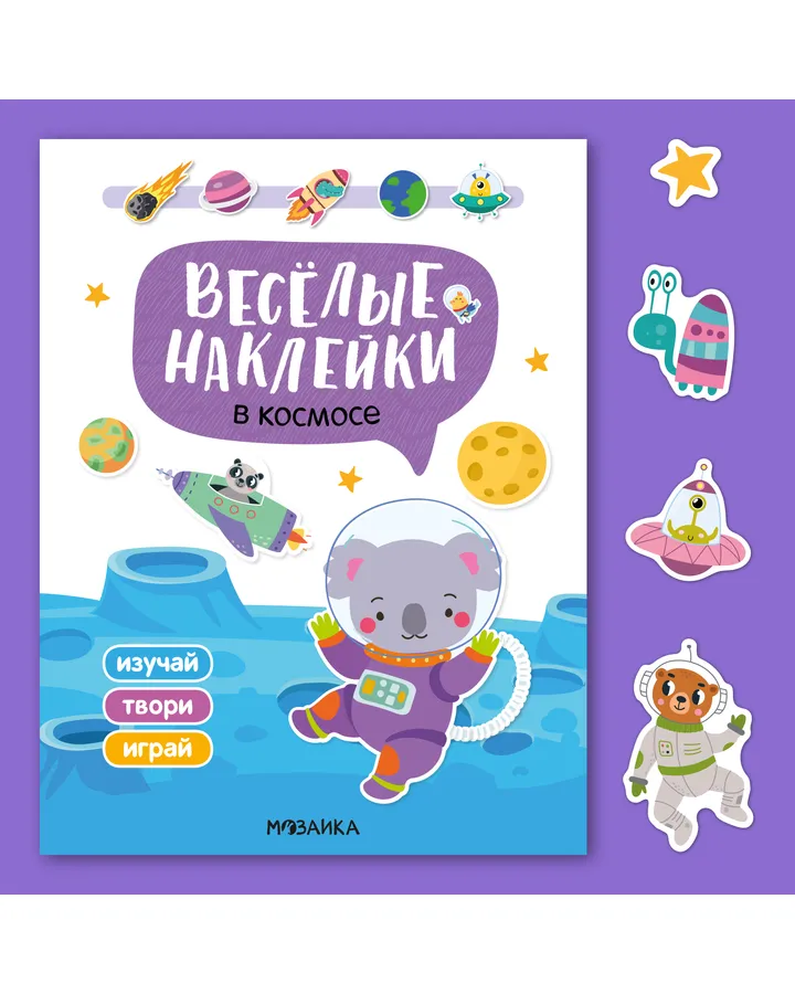 Книга МОЗАИКА kids Веселые наклейки В космосе