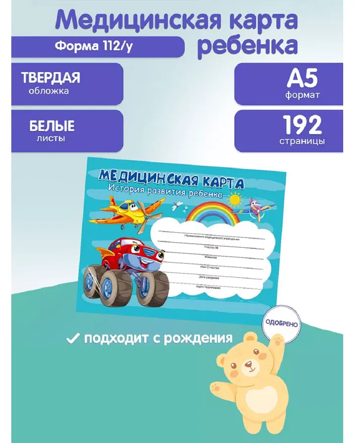 Амбулаторная карта Prof-Press Мишки пилоты А5 144 листа 200х140 мм