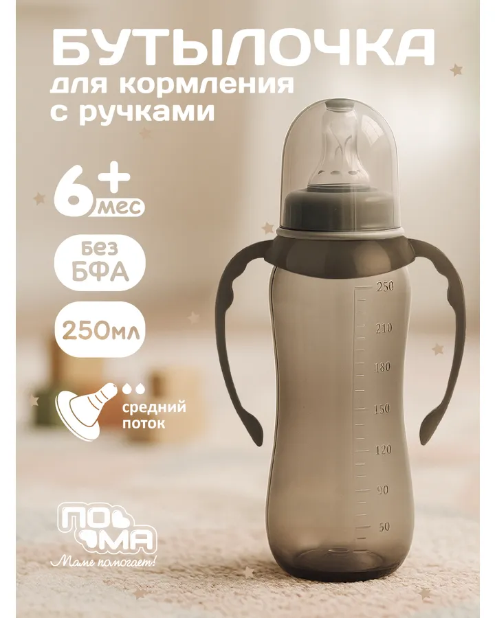 5Бутылочка Пома Easy Cup 250 мл 1 шт.Плотный пластик, удобно держать Лаконичный дизайн. Взяли такую еще зеленую Но заменили соски на 4+ того же пооизводителя. Эти плотноваты и нам тяжело из нее кушать пока