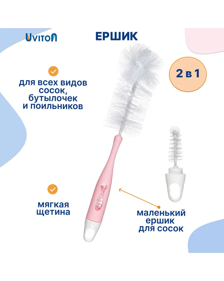 5Ершики Uviton для соломинок и трубочек Набор 2 штуки Арт.0405Шикарные щёточки, идеально для трубочки в поильнике. Покупкой довольна.