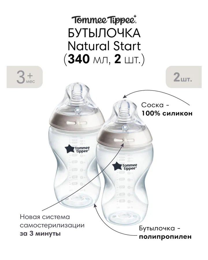 Бутылочка Tommee tippee 340 мл 2 шт. в ассортименте
