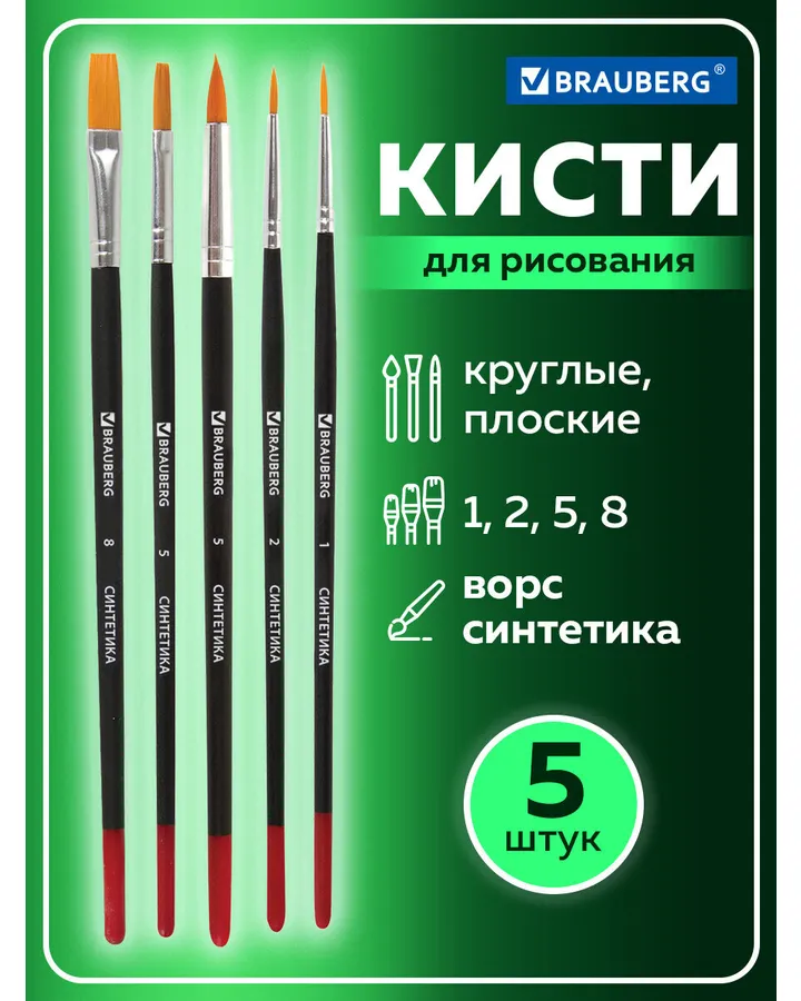 Кисть Brauberg 5 шт. (синтетика)