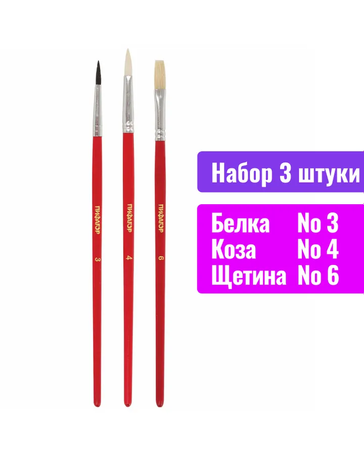 Кисть Пифагор 3 шт. (белка, щетина, коза)