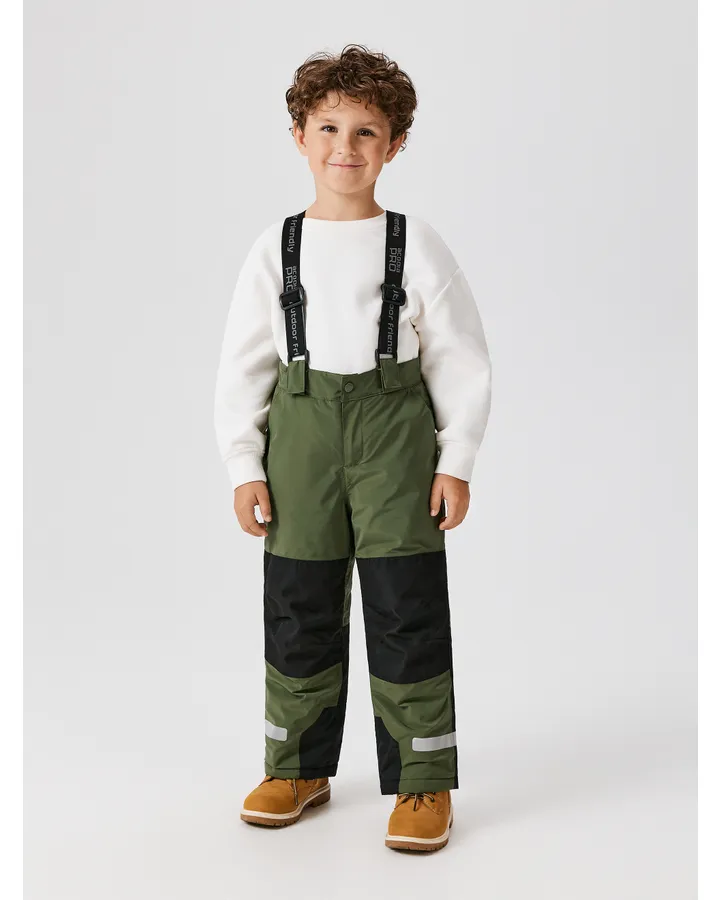 4Брюки на бретелях FuturinoНа рост 120 - рр.122 как раз, без запаса, но взяли доходить эту зиму, так что ок за 800р. Тёплые, в -20 одеваем на термобелье, ребенок гуляет по 2 часа и даже иногда жарко при высокой активности, типа катания с горки. Катание с ледяной горки, кстати, прошли неоднократно, не намокли, не порвались.