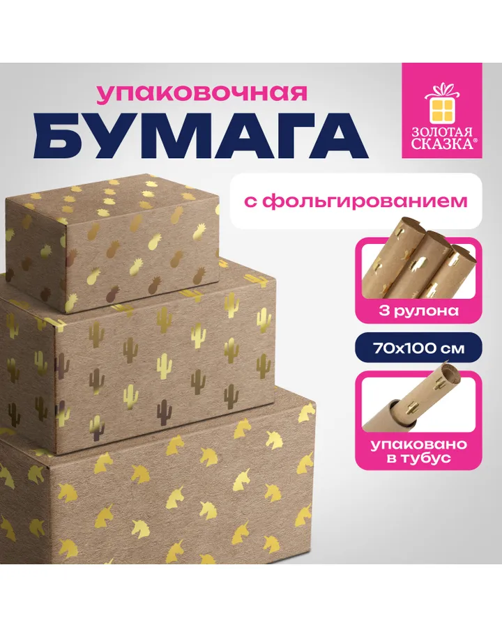 Бумага упаковочная Magic Time Пирожные Розовые 70*2*2см 76607