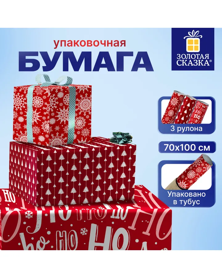 Бумага упаковочная Феникс Презент с декоративным рисунком 70*100см 80г/м2 79421