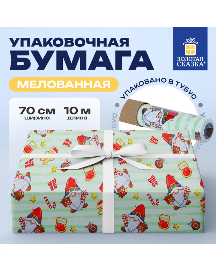 Упаковочная бумага Золотая сказка для подарков рулон крафт набор 3 штуки