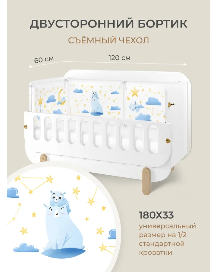 Красивые бориики, но обратите внимание, что они на пол кровати. Т.е. чтобы обычная прямоугольная кроватка была вся закрыта, нужно купить 2 набора.