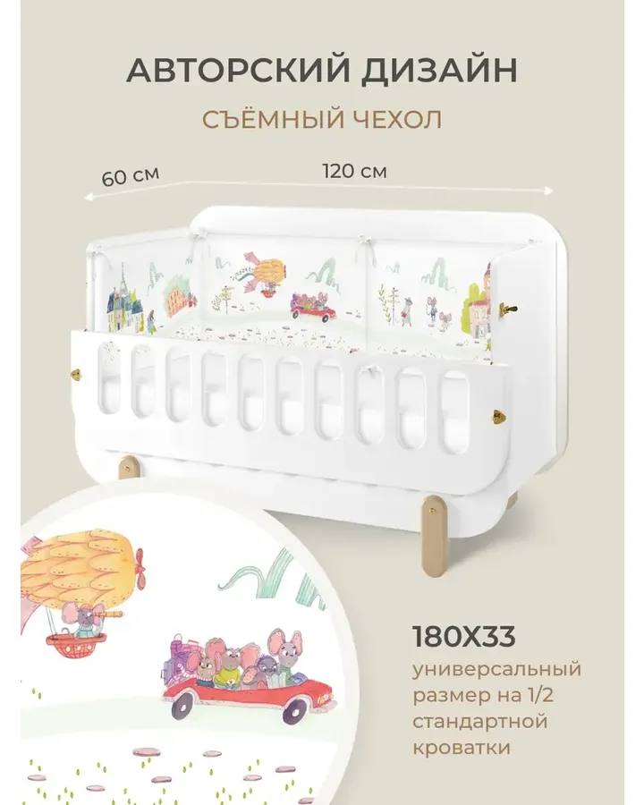 Бортик Dr. Hygge Салатовый поездХорошо крепится, не линяет, не деформируется после стирки. Замечательные, нужно брать.