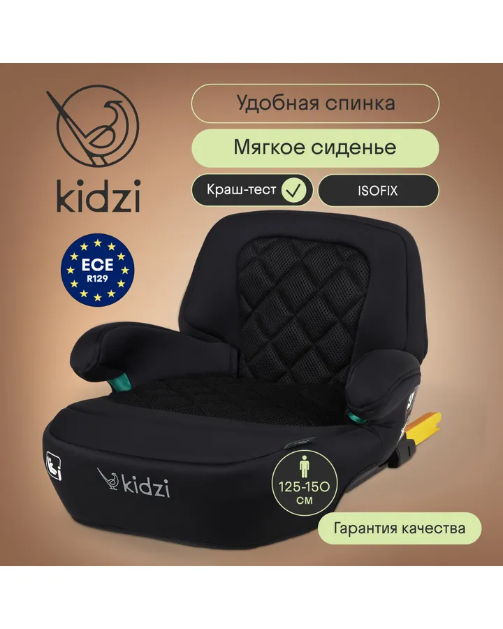 5Автокресло Kidzi BRO i-SIZE Isofix 3 (22-36 кг) черныйХочется отметить, что у этого бустера довольно длинное сиденье, не часто такие встречаются. Младшему сыну нравится, ноги не затекают даже в долгих поездках. Говорит удобно сидеть, не устает. Спинку пока сняли, посмотрим, как больше понравится ездить
