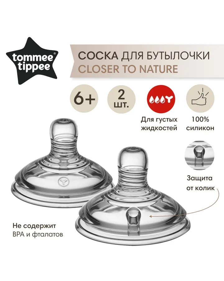 Соска Tommee tippee силикон (для густых жидкостей) 2 шт.