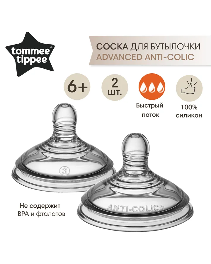 Соска Tommee tippee силикон (быстрый поток) 2 шт.