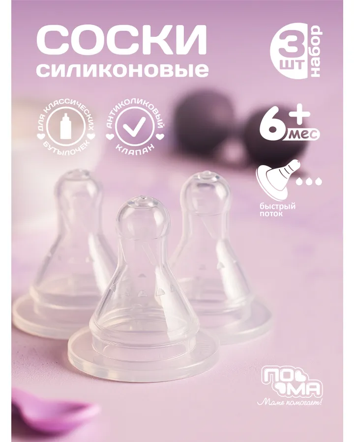 Соска Пома силикон (для густых жидкостей) 3 шт.