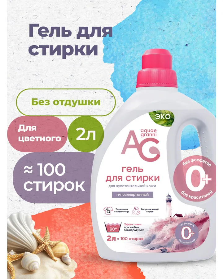 Гель для стирки Aquae Granni Sensitive детский, без запаха 1 лОтличный гель для стирки. Стираю им также одежду для взрослых, работает замечательно