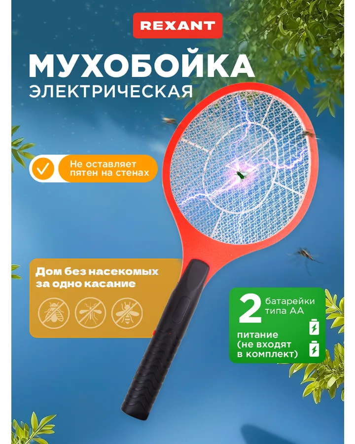 5Мухобойка REXANT электрическая на батарейках для уничтожения насекомыхМухобойка четкая, эта 3 уже, вторую я сломала случайно как треснула в и она поломалась