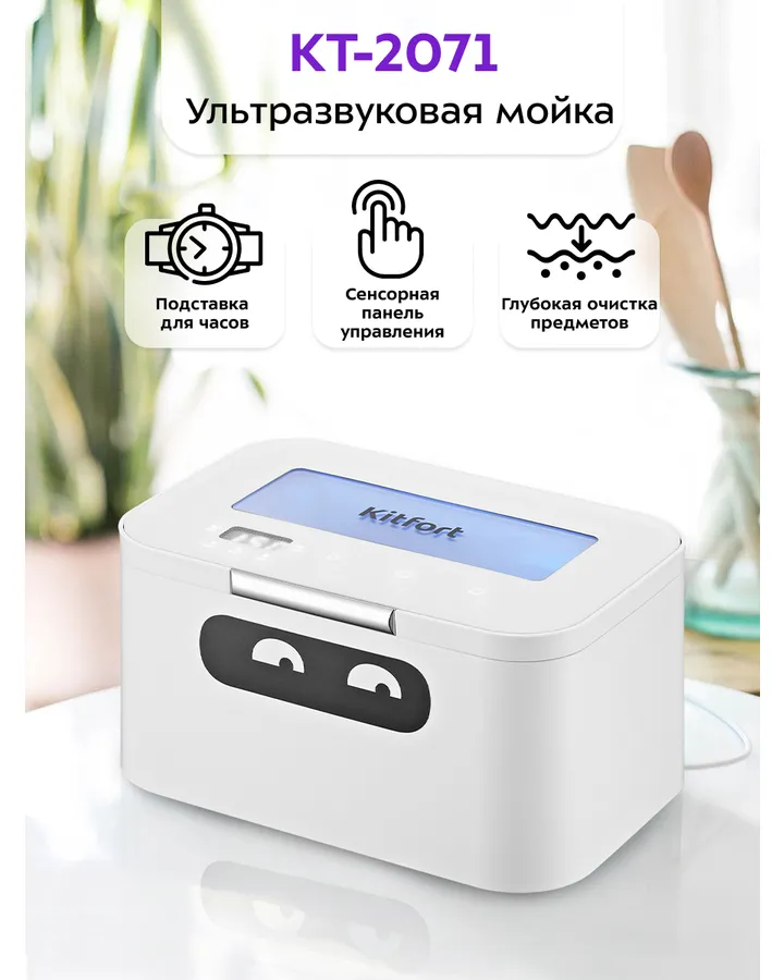 Ультразвуковая мойка KITFORT КТ-2071Мойку приобрела для чистки украшений. В использовании проста. Мойка компактная, места занимает мало, всё помещается, мощная, отлично чистит. Отличная вещь для чистки мелочей от загрязнений. За такую цену просто супер, рекомендую! Стильный внешнего вида, качественный пластик, сенсорной панель, таймер с программами от 90 сек до 10 минут. Со своей задачей справляется.