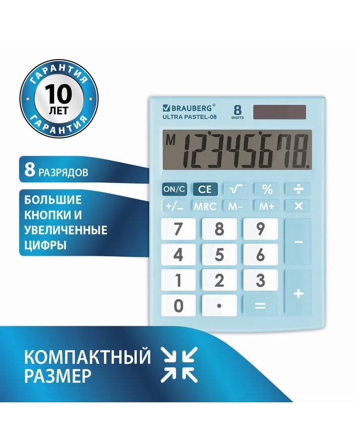 Калькулятор BraubergКалькулятор супер 👍. Brauberg как всегда впечатляет, надёжный производитель проверенный временем. Кнопки удобные, большие, цифры крупные. Стильный цвет (выделяющий) из всей массы.