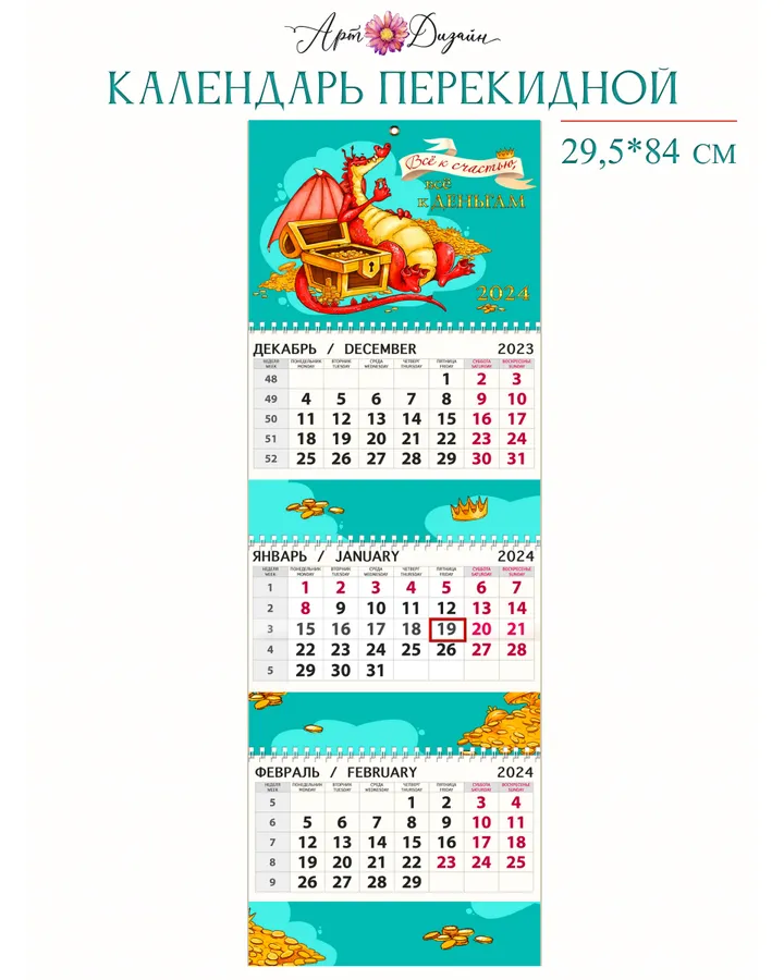 Календарь Арт и Дизайн Квартальный трехблочный премиум Дракон 2024 года