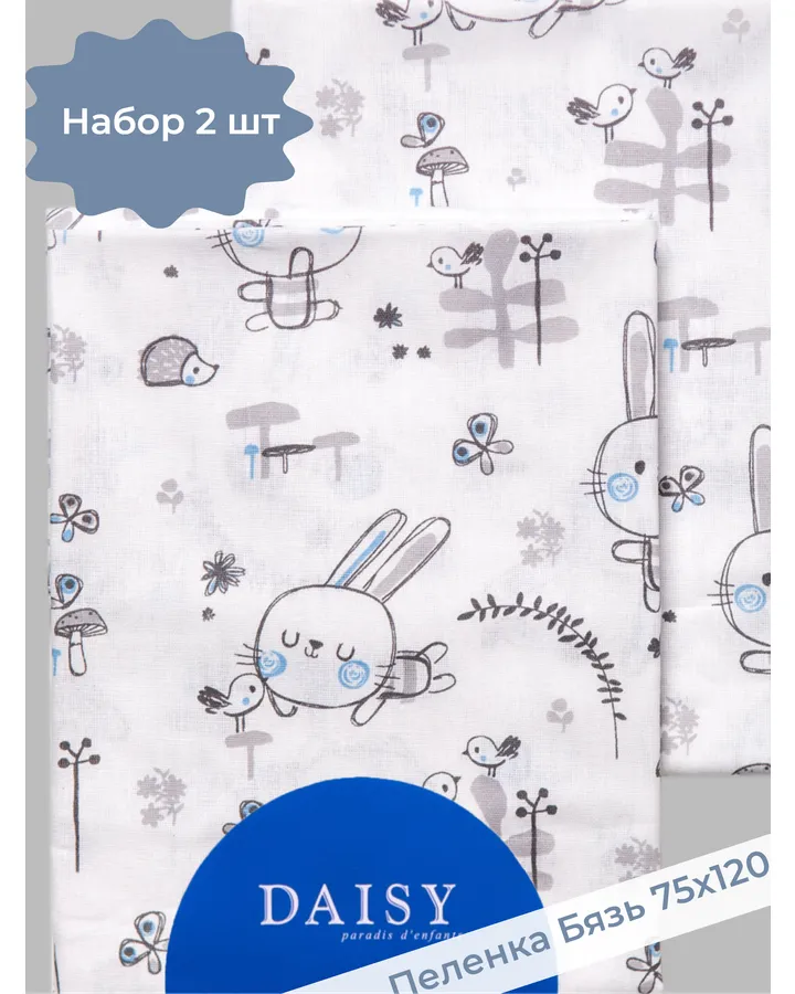 Пелёнка Daisy Зайчик с щечками бязь 75х120 см 2 шт.