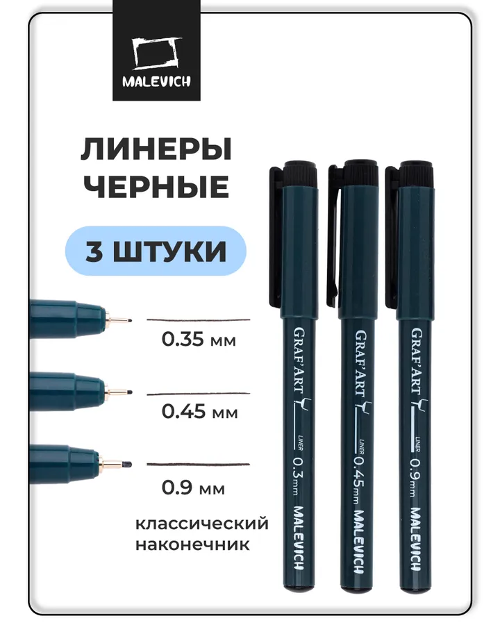 Ручка капиллярная Малевичъ 3 шт.Набор супер. Особенно классно рисовать ручкой в виде кисти . Насыщенный цвет.