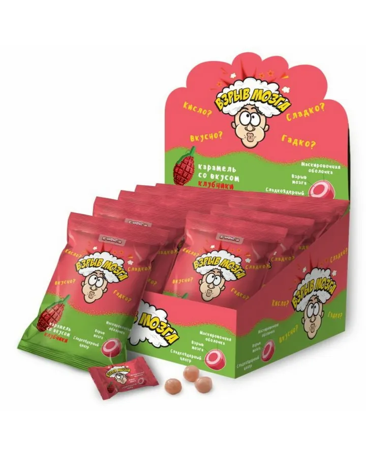 Карамель Конфитой ВЗРЫВ МОЗГА со вкусом клубники блок 24 шт