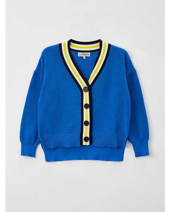 5Кардиган Smena Кардиган на молнии, плотный, интересная вязка, смотрится строго и аккуратно для школы.