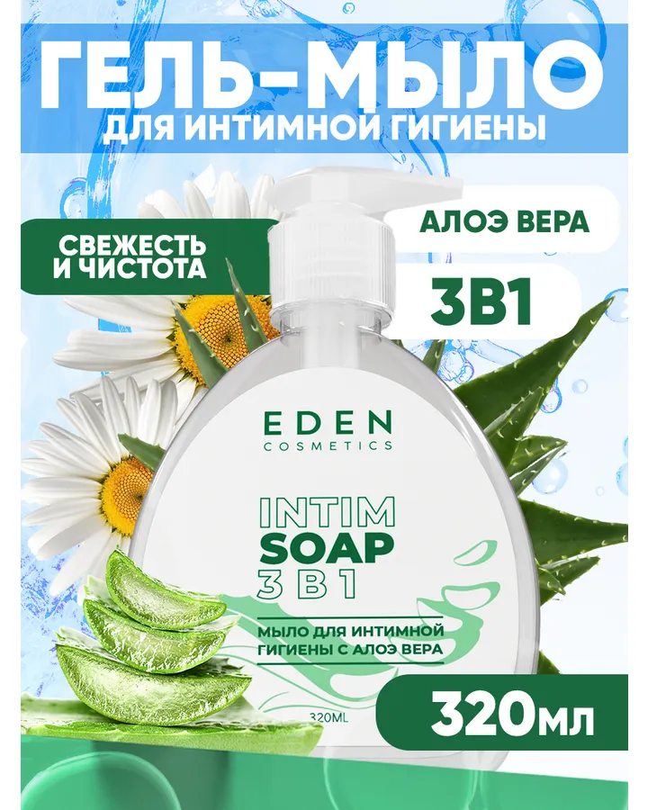 Гель-мыло для интимной гигиены EDEN 3 в 1 с молочной кислотой и алое-вера 320 мл