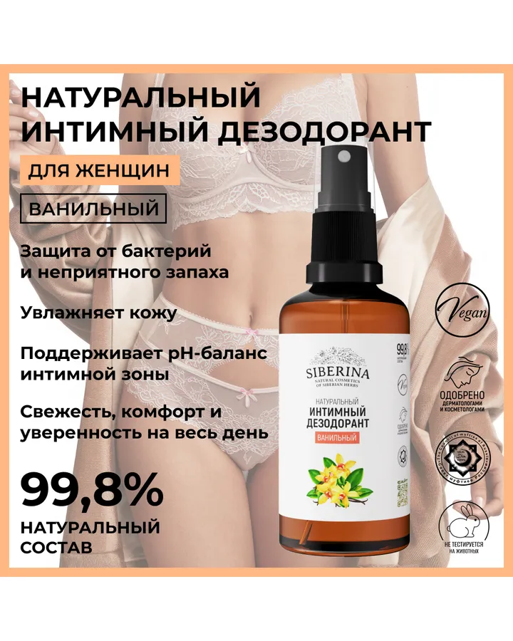 5Интимный дезодорант Siberina натуральный «Гипоаллергенный» увлажняет и успокаивает 50 млзапах приятный, не вызывает раздражения и зуда