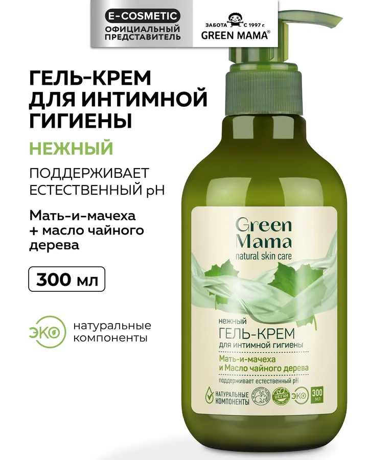 Гель-крем Green Mama для интимной гигиены мать-и-мачеха и масло чайного дерева 300 мл