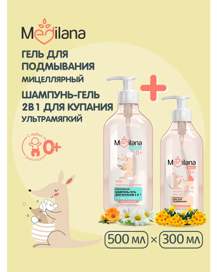 5Шампунь-гель для купания 2 в 1 MEDILANA 500мл и MEDILANA Гель для подмывания младенцев 300 млВыгодный и хороший набор