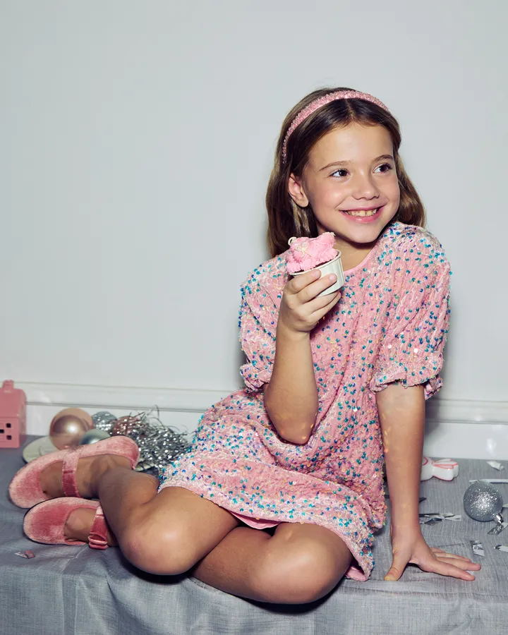 Понравилось дочери и мне. Сияет. Нарядное. Со шляпой получается костюм, без шляпы праздничное платье. Рост примерно 110, размер 122. Плалье сидит хорошо.