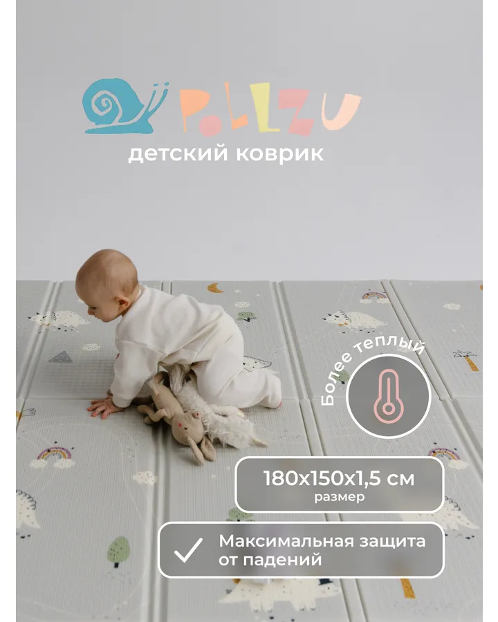 Детский складной коврик Pollzu Акварель 150 x 180 смХороший плотный коврик. Удобный. Нравится расцветка и то что одна сторона полностью однотонная. Пришел целый и невредимый, есть сумка для хранения.