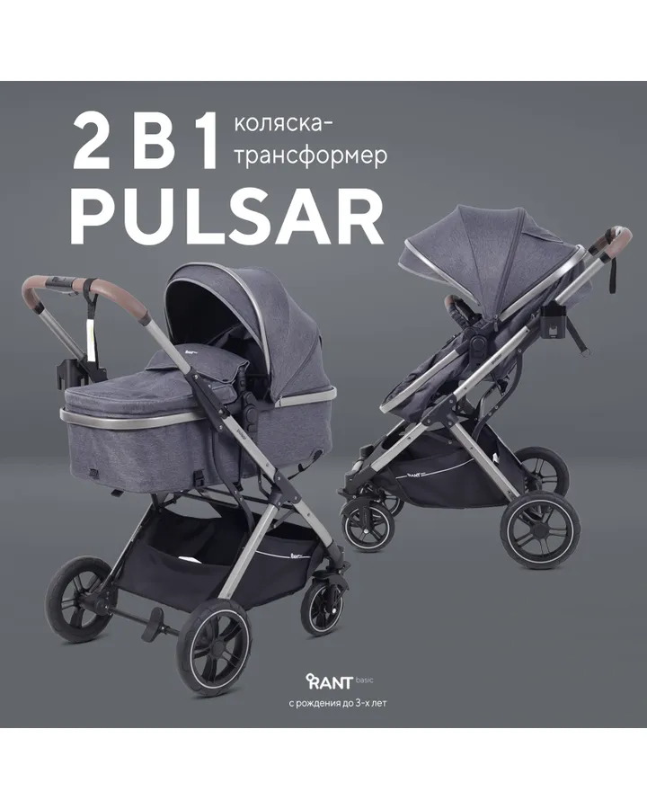 5Коляска трансформер Rant Basic Roller Gold 2в1, grey серый