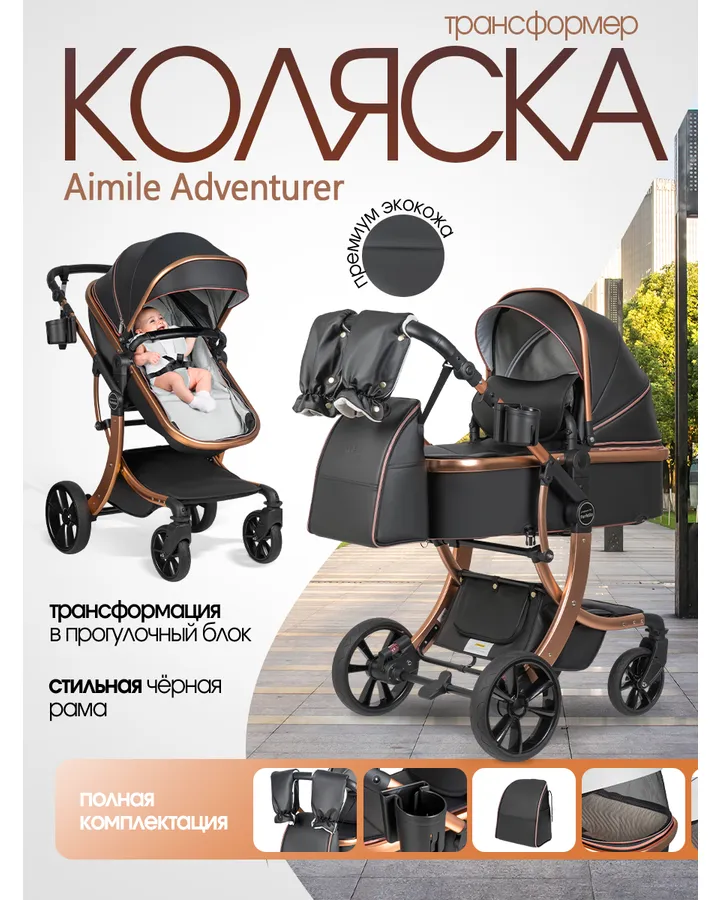 5Коляска трансформер Aimile Adventurer коричневыйОтличная коляска.