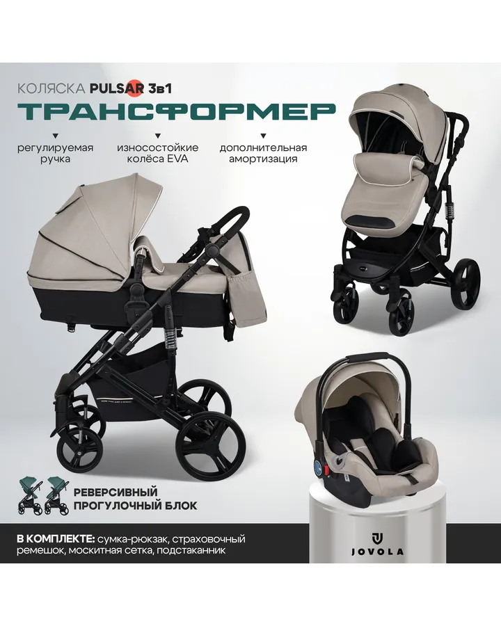 5Коляска трансформер MOWbaby Jasper 3в1, beige бежевый