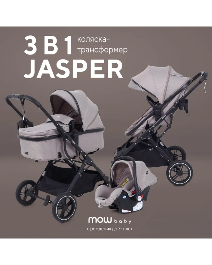 Коляска трансформер MOWbaby jasper 3в1 gold black черныйКоляска мужу понравилось... Мне тоже но было бы ручка отпускалась круче было бы. А так лёгкая ребёнок норм спит в ней.
