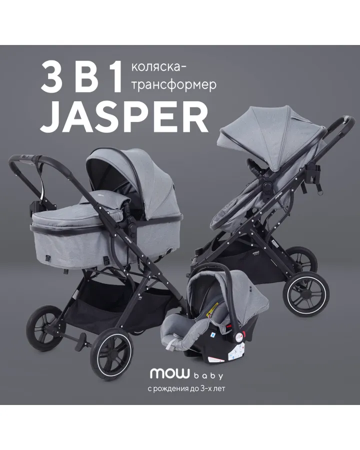 5Коляска трансформер MOWbaby Jasper 3в1, grey серый 5Коляска трансформер MOWbaby Jasper 3в1, grey серый- Очень легкая в сборке, муж собрал буквально за 15 минут, очень удобная. Цвет приятный, цена отличная, ждет хозяйку)