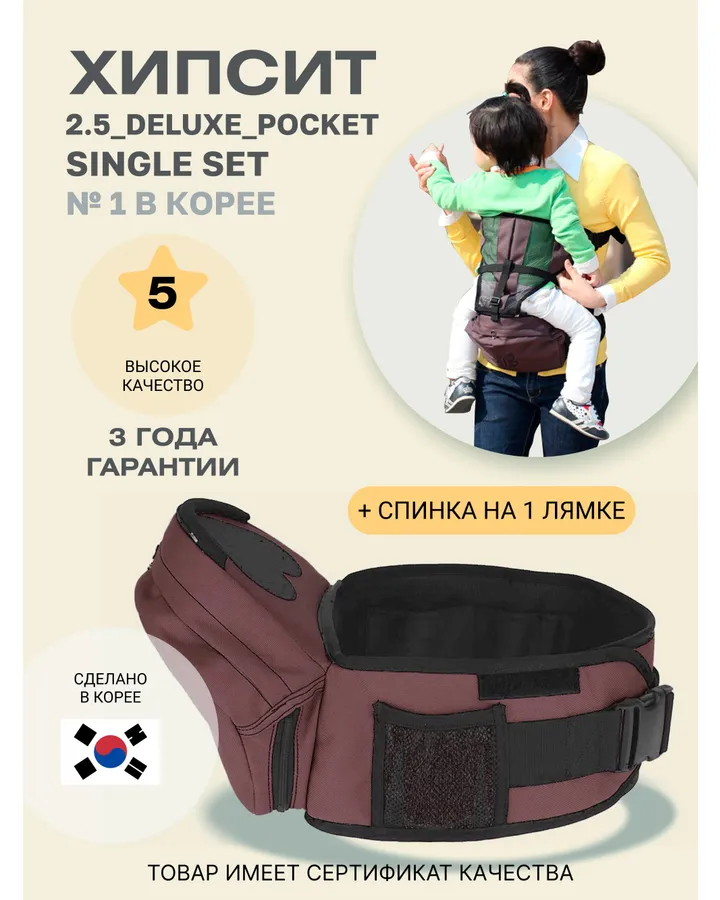 Хипсит Sinbii с карманом и со спинкой на 1 лямке коричневый