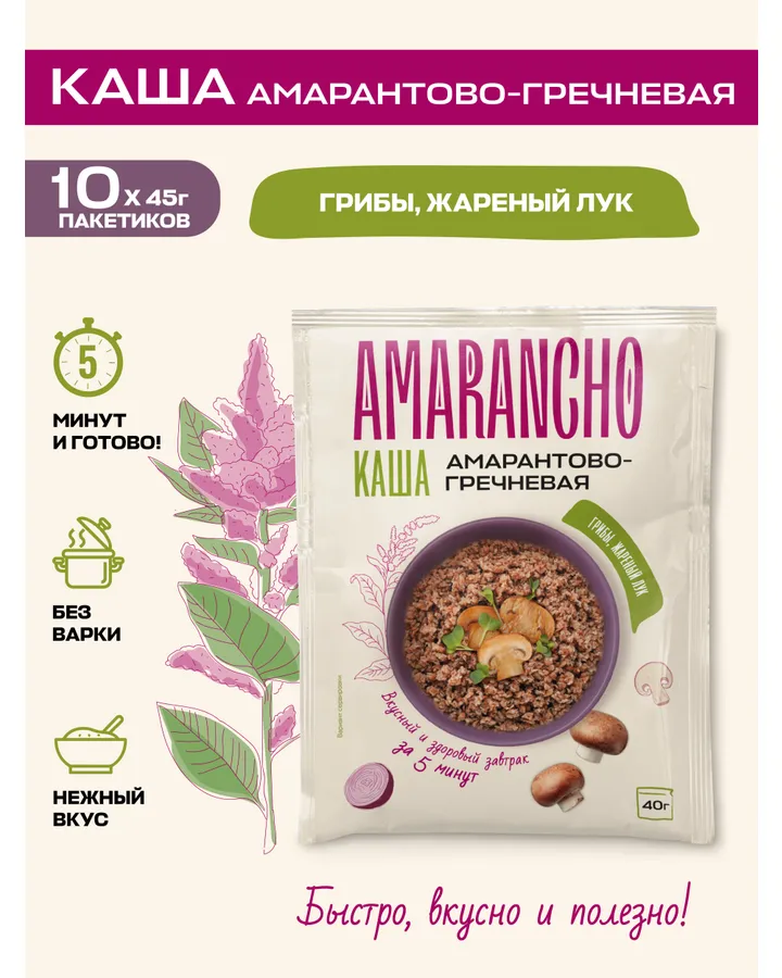 Амарантово-гречневая Amarancho с грибами и жареным луком