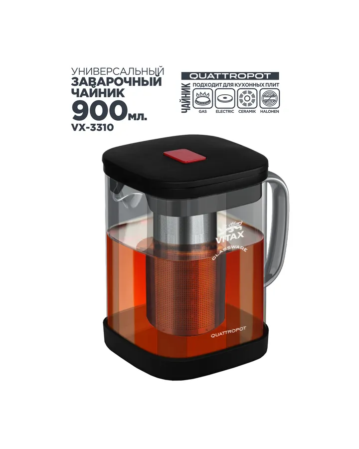 Чайник заварочный MARTA MT-GD3923AОтличный по дизайну, очень удобная ручка, попробовали его на электрической плите, всё выдержал! Супер!