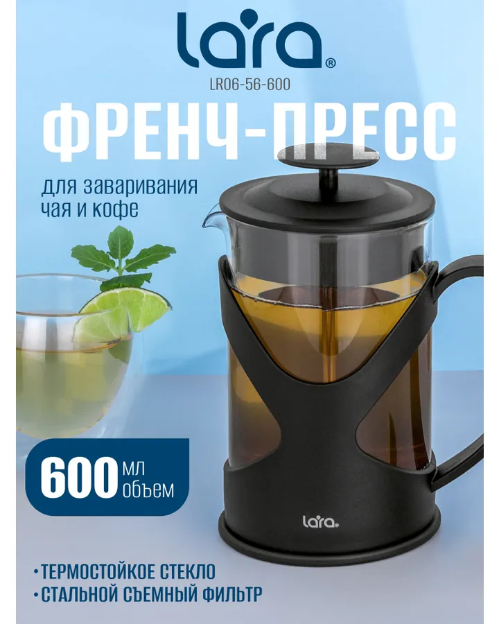 Френч-пресс 1000мл. LARA LR06-56-1000