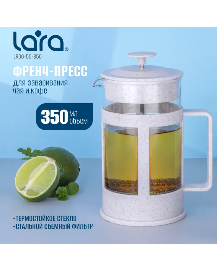 Френч-пресс LARA LR06-50-350 бежевый 350 мл эко материал волокно пшеничной соломы