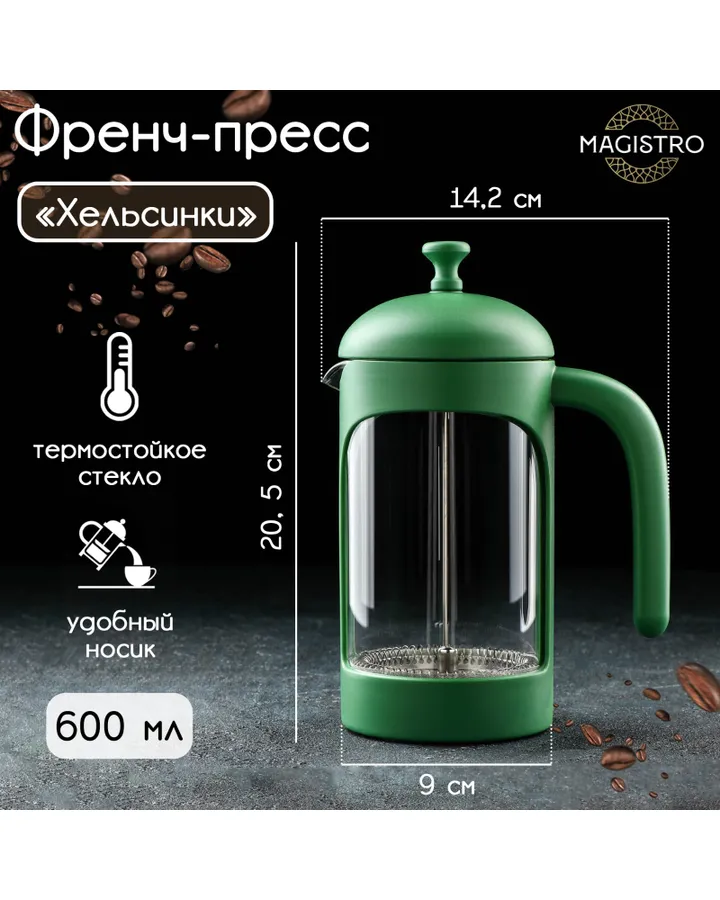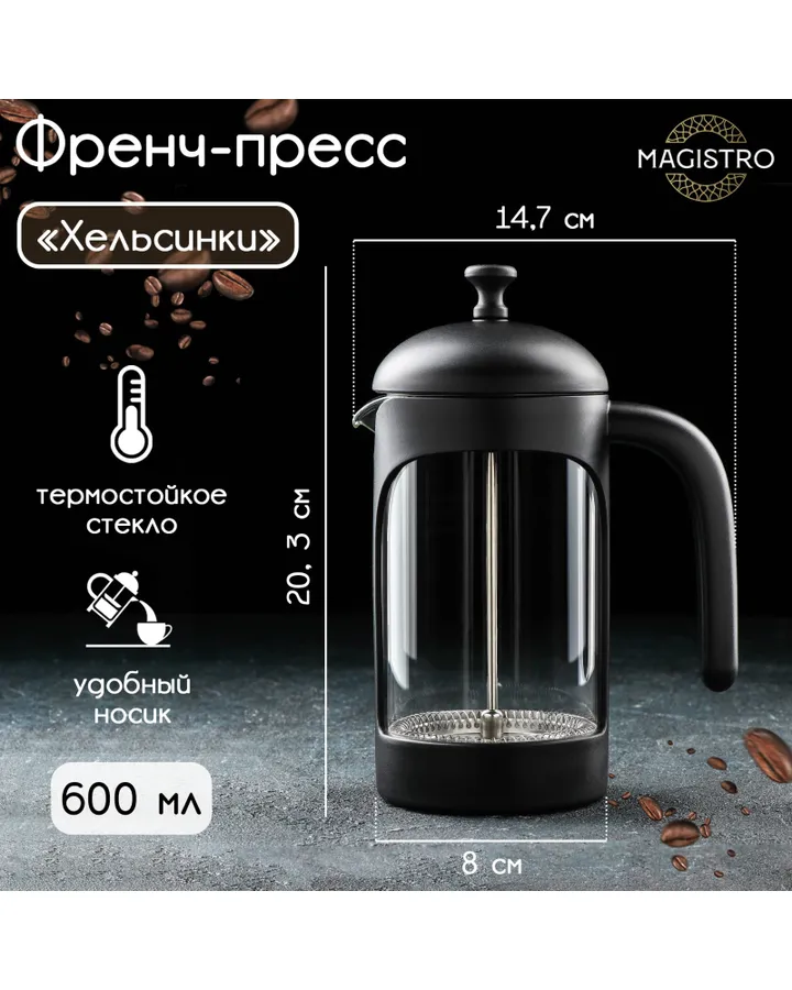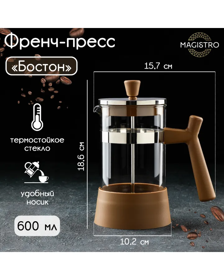 5Чайник заварочный френч - пресс MAGISTRO «Бостон», 600 мл, стеклоЗаварник хороший, удобно использовать
