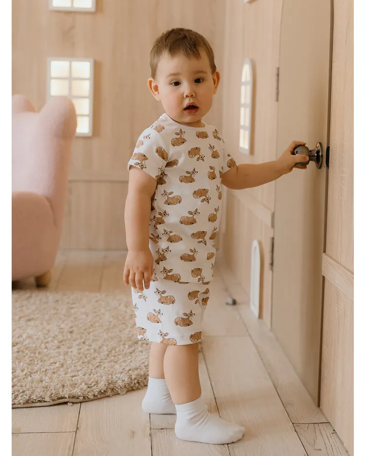 Хороший материал(только в расцветке с зайчиками, брали этой же фирмы пижаму с единорогами -состав абсолютно другой, хоть и написано 100%хлопок, по факту с единорогами тянется пижама и ребенок потеет в ней ночью, с зайцами такого не было)