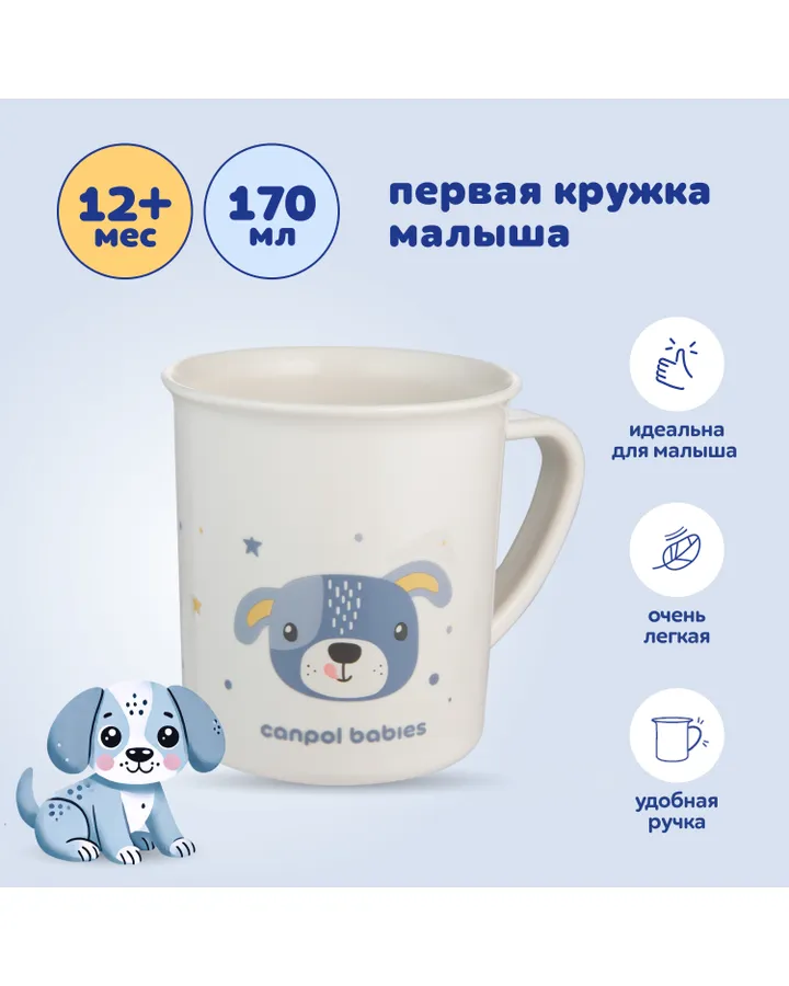 CANPOL babies Пластиковая чашка Cute Animals 170 мл, голубая