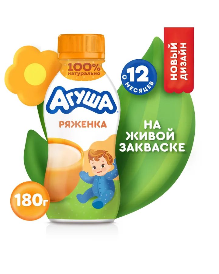 Ряженка Агуша 3.2% классическая 180г с 12месяцев